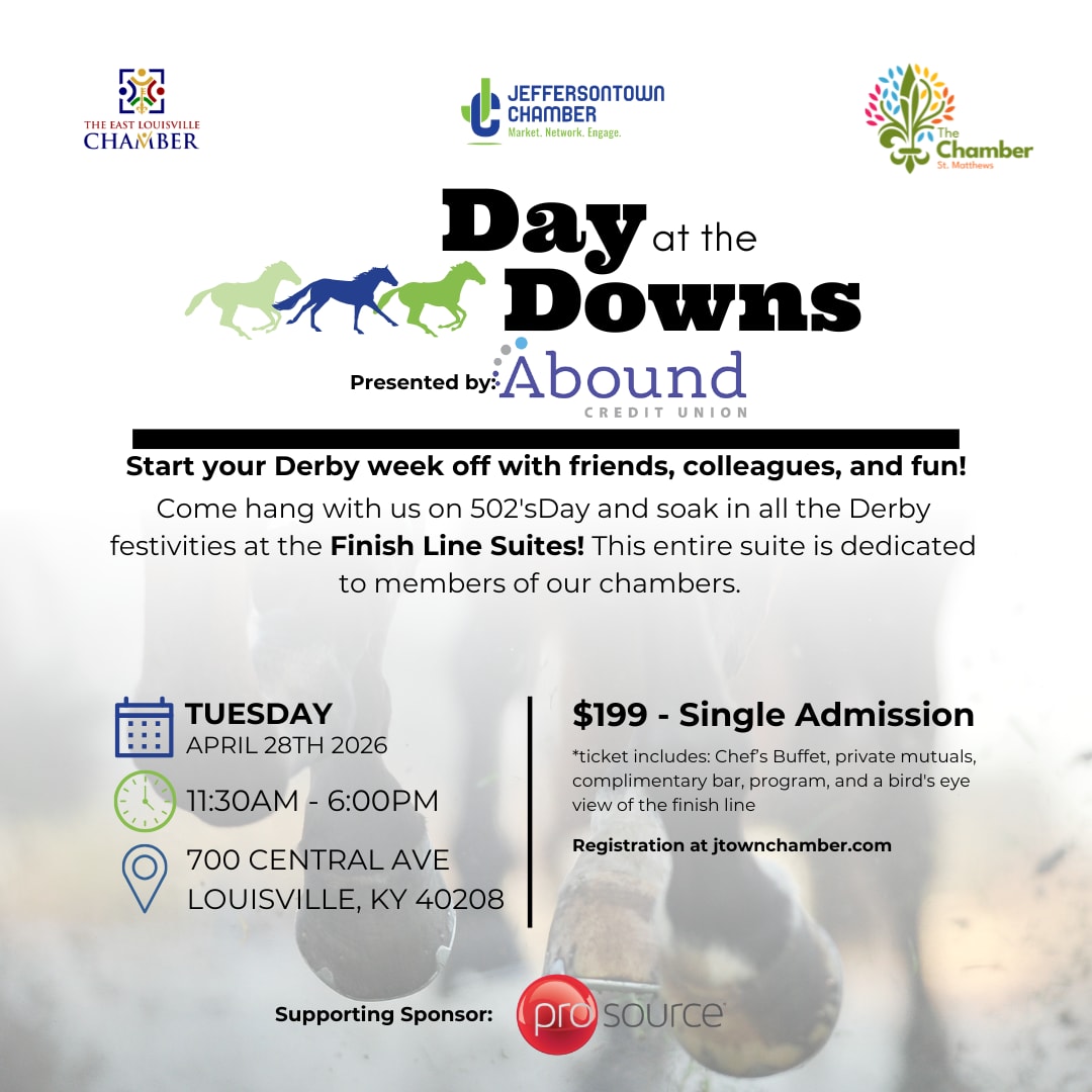 We’re teaming up with The East Louisville Chamber and the The Chamber St. Matthews for a Chamber Day at the Downs! Come hang with us on 502'sDay and soak in all the Derby festivities! You won’t want to miss the fun, the races, and the great company!